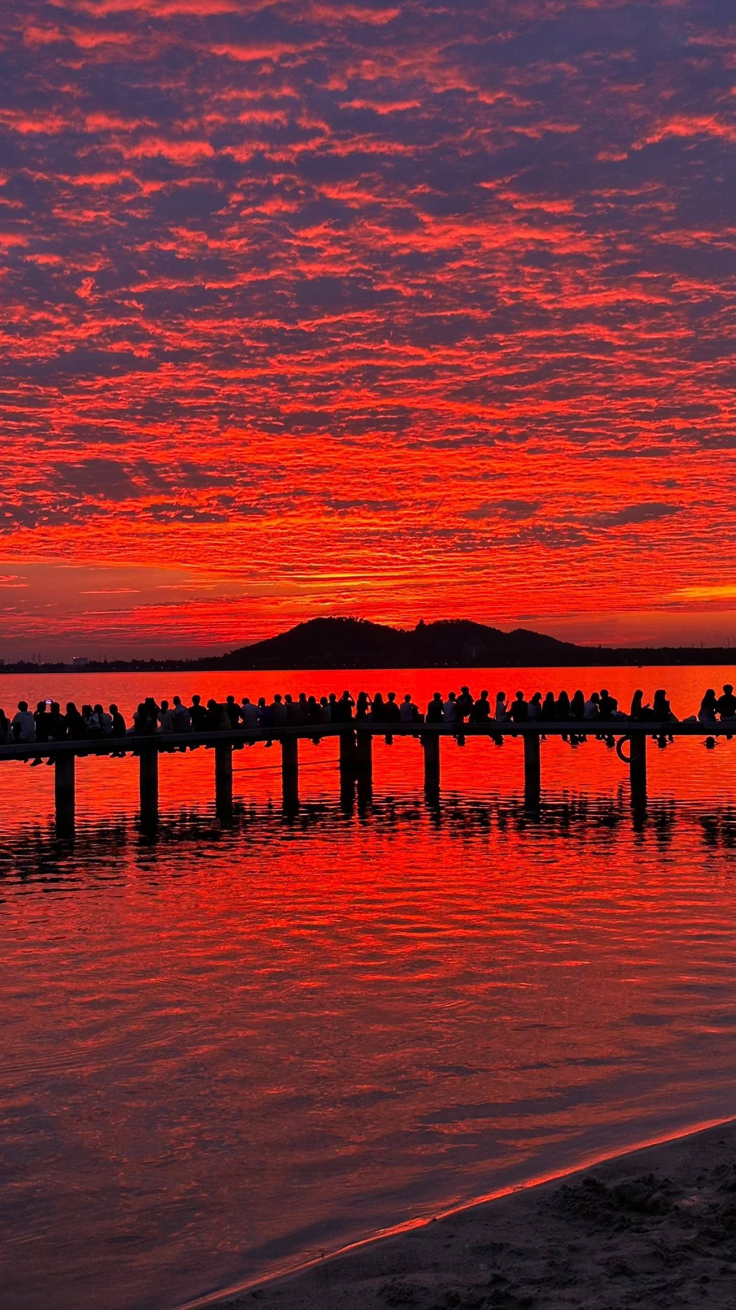 “看到太阳跃出湖面,浮光跃金的那一刻,觉得一切都值了。” 在社交平台上,众多博主连发十几张图,分享来此看完日出的心情。他们整理好“攻略”:一定要早到,最好4时20分就来抢最佳机位;穿浅色衣服,你大概率能拍到你的“人生照片”;栈桥人多,要小心别让手机掉进湖里……