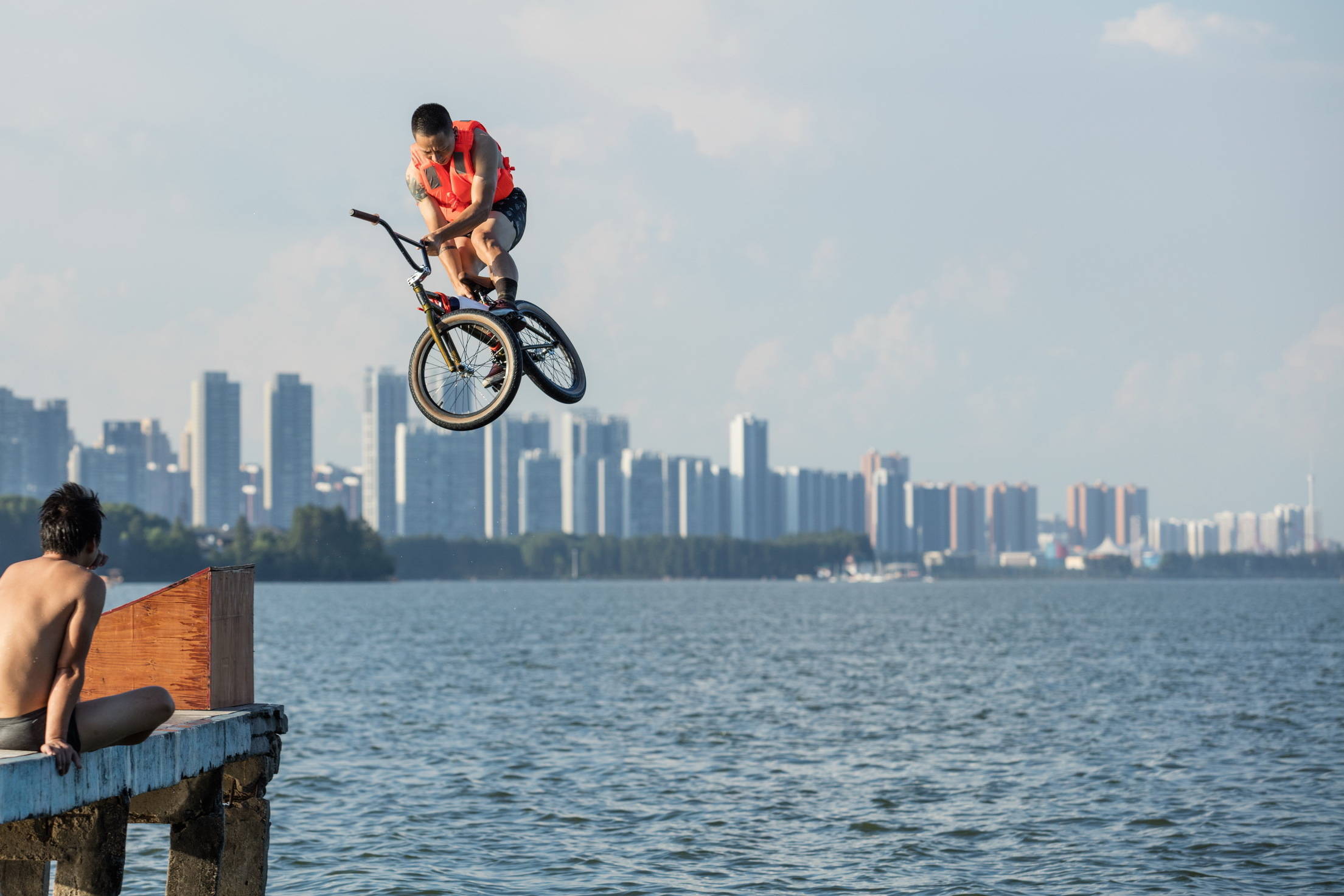 跳东湖——在它成为全国知名的文旅IP之前,最初源于一群年轻人的突发奇想。2010年夏天,武汉人刘真宇在凌波门组织了第一场BMX(自行车越野运动)跳湖行为艺术,以栈桥突出的一角为平台,骑着自行车、踩着滑板,以高难度动作跃入东湖。